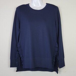 STELLA & Dot Long Sleeve Top Ruffle Side Slit Blue S
