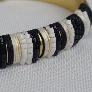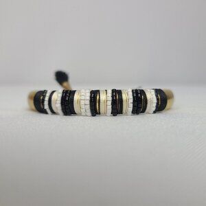STELLA & Dot Matt Gold Black Beaded Cuff Bracelet