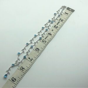 STERLING Blue Topaz & CZ Fancy Leaves Vines Necklace w Drop Pendant 16” + 1”