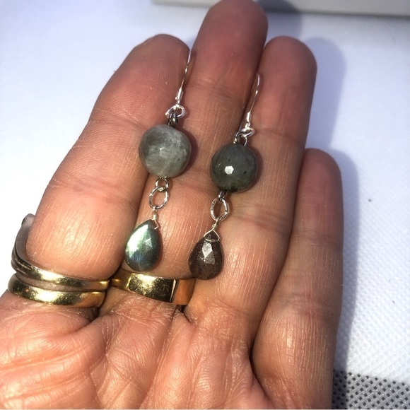STERLING & Labradorite Facet Cut & Briolette Drop Earrings 1.9”