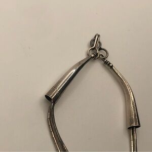 Vintage Navajo Sterling Silver Multi strand liquid silver heishi tube bead necklace w onyx tube beads