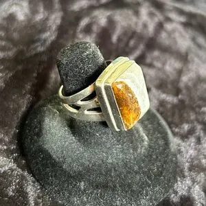 Gorgeous heavy duty ring, measures at a size 7 Sterling silver with greyish/brown natural agate stone