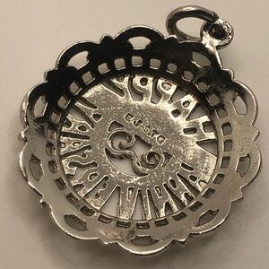 Vintage sterling silver filigree happy anniversary charm pendant.