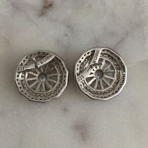 STERLING Silver & White CZ Brilliant Sparkly Mosaic Stud Earrings Bridal 16mm