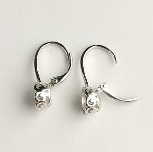STERLING silver cz solitaire drop earrings lever back in filigree se…
