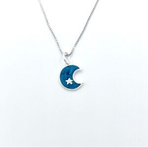 Two sterling silver chains with turquoise enamel moon charm.