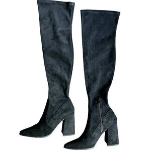STEVE MADDEN Black Chunky Heel Knee High Tava Boot US 9 . Microsuede long lean upper with a square chunky heel. Zippers on inner ankle. The it boot for this year. No wear on these gorgeous boots.