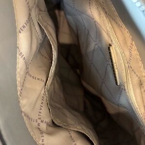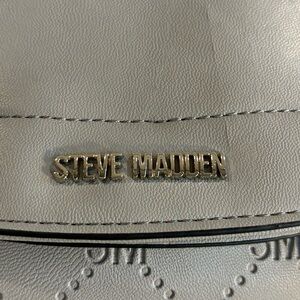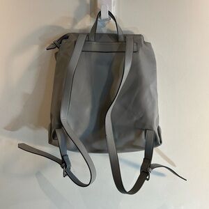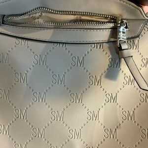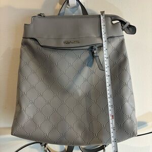 STEVE MADDEN Monogrammed SM vegan Leather Backpack Top Handle Bag Lined Grey. Lovely neutral. Elegant and refined. Lining stuck under zipper of small pocket. It does not show.