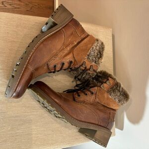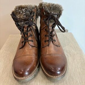 STEVE MADDEN Sz 40 Adelee Leather Faux Fur Trimming Zipper Lace up Boots. New without tags. Super cute and versatile. Dress up or down.