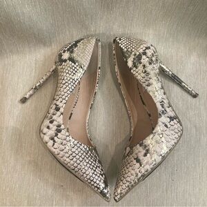 STEVE MADDEN Sz 7 Vala In Snake Gold Pointy Toe Slip On Stilettos Heels Pumps. Snake embossed man made upper with man made sole.