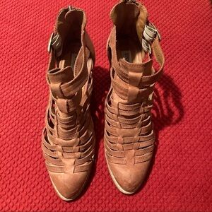 STEVE MADDEN Strappy Ankle Booties Stacked Heel Leather Sz 8. Heel: 2.5. Like new.