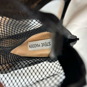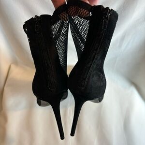 STEVE MADDEN Sz 8.5 Vielo Heels Mesh Wrapped Back Zipper Pointy Toe Black Suede