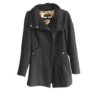 STEVE MADDEN Wool Winter Coat Asymmetrical Zip Black S