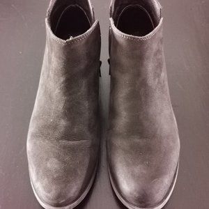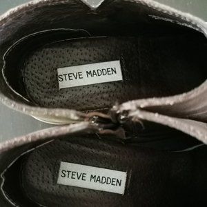 STEVE MADDEN brown leather ankle boots - Ladies size 9.5, casual, gold accents on heel, wood grain wedge. Gorgeous boot! Very lightly worn. Perfect condition!