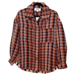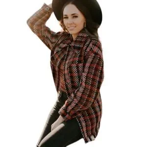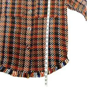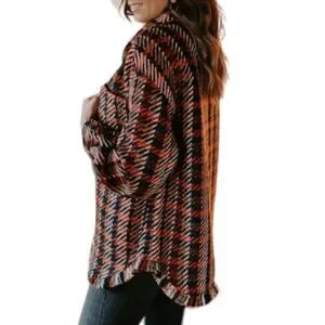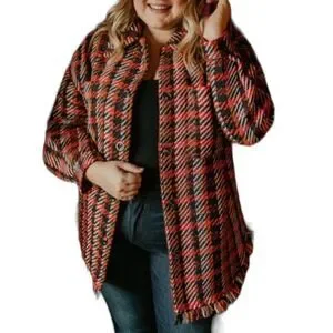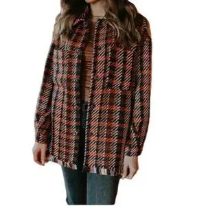 This heavy shacket gives us all the vintage tweed vibes! Featuring colours such as red, orange, black & even navy blue! This shacket also features bottom fringe, a true shacket length, and patch pockets. The detailed snap closures are our favourite part! This shacket has great weight for transitioning into the colder winter months!