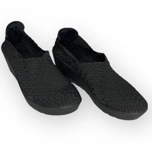 STEVEN by Steve Madden Y2K Platform Woven Wedge Shoes Black Chunky Textile 8