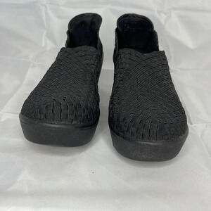 STEVEN by Steve Madden Y2K Platform Woven Wedge Shoes Black Chunky Textile 8