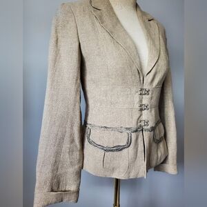 STILLS ATELIER linen gold sparkle blazer with silver embroidered pockets. Size 4