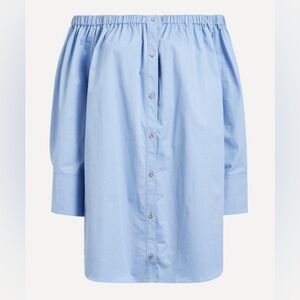The Amanuel mini-dress from Copenhagen label Stine Goya embodies the brand's spirited use of colour and bold, sculptural shapes. Crafted from cotton for a voluminous, oversized fit with an elasticated off-the-shoulder neckline and loose, long-sleeves, this contemporary take on the classic shirtdress is complete with a buttoned closure and cuffs.