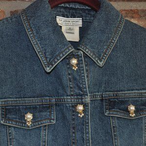 ST.JOHN SPORT by Marie Gray Denim Jean Jacket Pearl & GOLD Snap Buttons Sz- P
