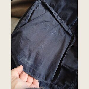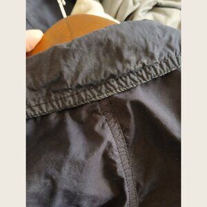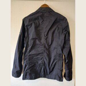Jacker was bought second hand and has had all of the branding removed. No size tag but fits XS. Has multiple shiny marks especially around the cuffs and the back collar - refer to pictures. Fabric is a technical cotton mix with a "paper" feel that's typical of Stone Island.