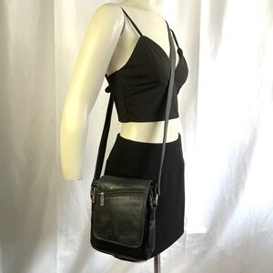 STONE RIDGE BLACK LEATHER CROSSBODY BAG MESSENGER BAG VINTAGE MADE IN CANADA 90s