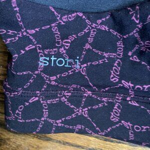 STORI BLACK WITH PURPLE LOGO PATTERN ICON LOW SUPPORT PAD SPORTS BRA NWT- SIZE 6