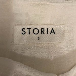STORIA Wrap Blouse with ruched details at the chest. Zipper at the back. A very chic blouse that works with a pair of skinny jeans or trousers.