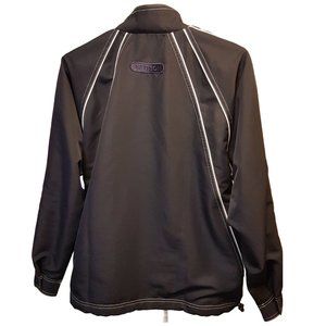 Features: Fully mesh lined (body and sleeves), front hip zippered pockets, drawstring waist, drop sleeves, velcro cuffs, double stitch & piping finishes, machine washable