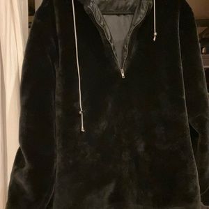 STORY OF LOLA OVERSIZED FRONT ZIP HOODED FAUX FUR JACKET