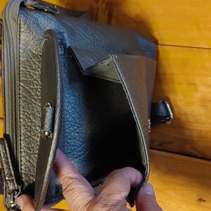 inside has 2 small pockets and a zip pocket