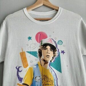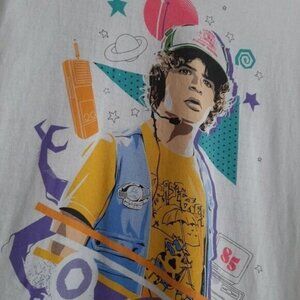 STRANGER THINGS Official Netflix Dustin Crewneck T-Shirt White Sz S
