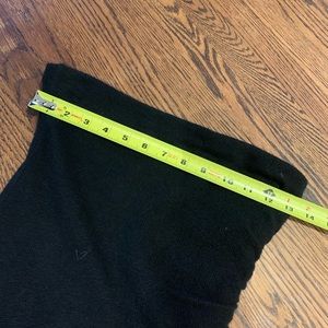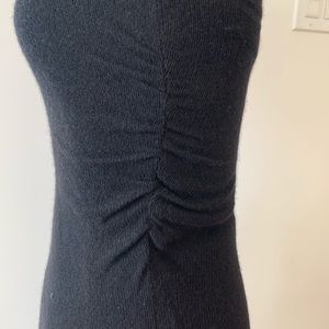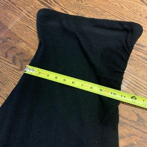 This black strapless wool/cotton/cashmere blend dress is soft and sexy. Ruching on left side. Amazing with heels and a chunky necklace or boots and a jean jacket. Love the versatility and the comfort. Soft with some stretch and a lovely knit cotton lining. Worn once! Excellent condition. The perfect LBD! A stunner for the holiday season!!