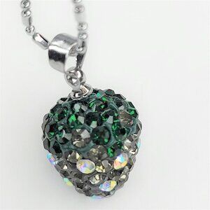 STRAWBERRY Shape Mini Green and Grey Rhinestone Small Pendant Necklace