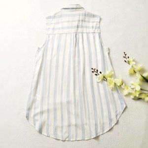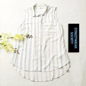 STREETWEAR SOCIETY Rayon Blouse Top White Blue Striped Sleeveless Button Front