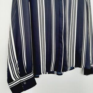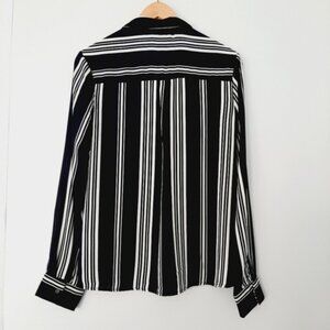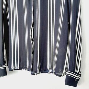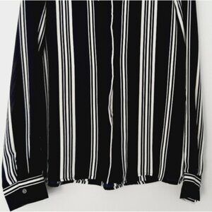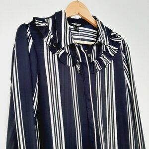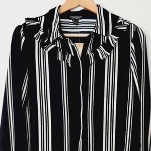 STREETWEAR SOCIETY Ruffle Collar Button Down Striped Shirt Top B&W Sz L
