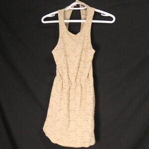 STREETWEAR SOCIETY | small | Tan Lace Dress | Button-Up Back Neck Closure