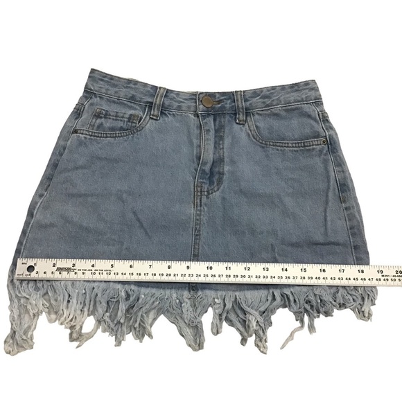 STREETWEARSOCIETY denim skirt raw jeans high-rise soft blue coastal sexy small
