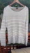 LEWIN-R Sweater gray light gray with white stripes. Fine lightweight knit pullover sweater long sleeves linen blend.