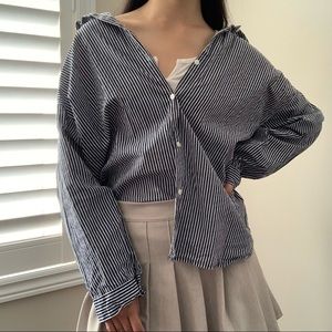 Oversized button up ๐ค love the navy blue & white colour way, so easy to pair outfits with!