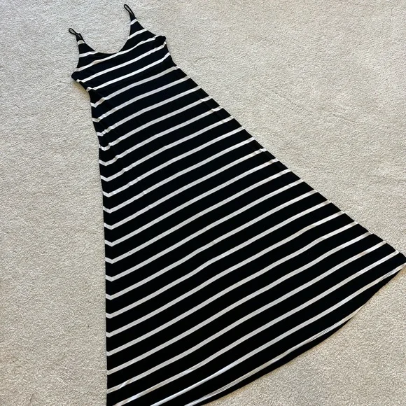 Black and white striped maxi dress, super flowy but fits the body just right