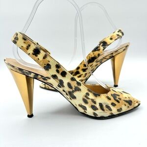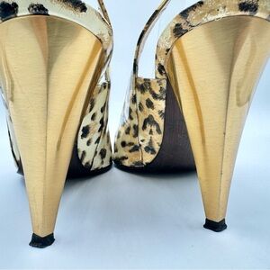 Stuart Weitzman Gold Yellow Tone Animal Print Slingback Heels