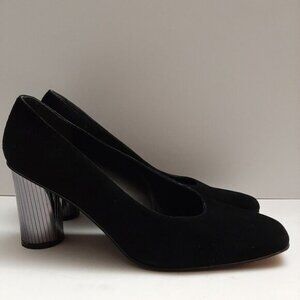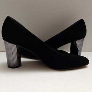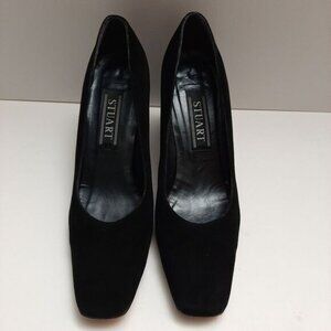 STUART WEITZMAN Mirrored Heels Retro Suede Genuine Leather Pumps Black Sz 7.5 AA