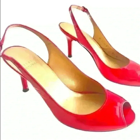 STUART WEITZMAN RED LEATHER SLINGBACK OPEN TOE KITTEN HEELS SANDALS 6.5 M