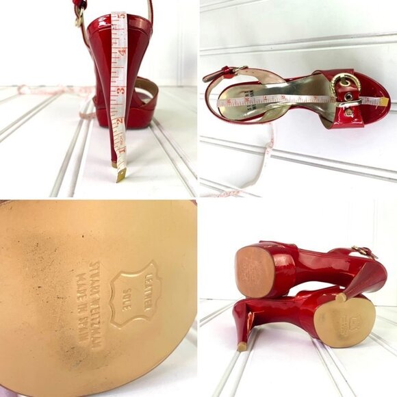 Style : STUART WEITZMAN RED PATENT LEATHER HEELS GOLD HARDWARE SLINGBACK PLATFORM SANDALS PLATFORM OPEN TOE 7.5
