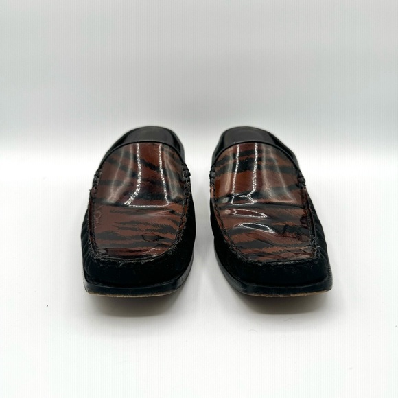 STUART WEITZMAN VINTAGE BLACK BROWN SHOE ANIMAL PRINTS SLIP ON SHOE BLOCK HEELS