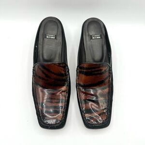 STUART WEITZMAN BLACK/BROWN ANIMAL PRINT SLIP-ON HEELS WOMEN'S SIZE 9 B