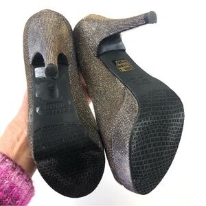 Stunning gold/pewter sparkle platform pumps. Depending on how you move these mesmerizing shoes catch the light and will make your feet the star of the OUTFIT. In like new condition- pretty enough to be an ornament or decor for your closet or coffee table!