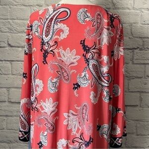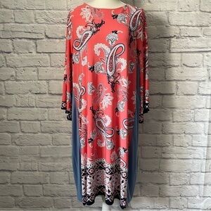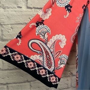 STUDIO One 3/4 Bell Sleeves Paisley Print Shift Crew Neck Midi Dress Size Medium
