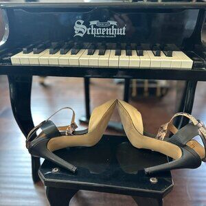 STUNNING DIBA WOMANS BEIGE STILLETTOS WITH BLACK & ALLIGATOR ACCENT STRAPS